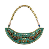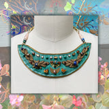 The SHIELD NECKLACE is a signature Gilded Mane design, with double layers of luxurious leather, zardozi embroidery & semi-precious stones.
