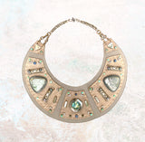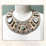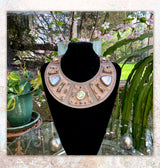This wearable art piece is made with Genuine Reclaimed Leather, which helps Gilded Mane fulfill its mission of minimizing leather waste generated by domestic production of leather goods. Since the foundation of this piece is leather, it is durable and should last for years with proper care. Gilded Mane does not recommend exposing your accessory to rain, sweat or other liquids, as water has the potential to damage leather and suede. Gilded Mane also recommends storing jewelry flat, away from dust and sunlight.