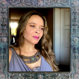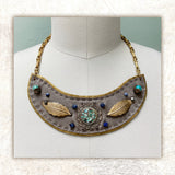 This wearable art piece is made with Genuine Reclaimed Leather, which helps Gilded Mane fulfill its mission of minimizing leather waste generated by domestic production of leather goods. Since the foundation of this piece is leather, it is durable and should last for years with proper care. Gilded Mane does not recommend exposing your accessory to rain, sweat or other liquids, as water has the potential to damage leather and suede. Gilded Mane also recommends storing jewelry flat, away from dust and sunlight.