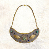 SHIELD NECKLACE : Turquoise Inlaid Brass on Taupe Leather