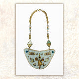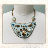 This bold statement necklace incorporates vintage metalwork, semi-precious stones and was designed to celebrate the women who continue to fight for gender equality.