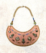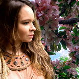 This wearable art piece is made with Genuine Reclaimed Leather, which helps Gilded Mane fulfill its mission of minimizing leather waste generated by domestic production of leather goods. Since the foundation of this piece is leather, it is durable and should last for years with proper care. Gilded Mane does not recommend exposing your accessory to rain, sweat or other liquids, as water has the potential to damage leather and suede. Gilded Mane also recommends storing jewelry flat, away from dust and sunlight.