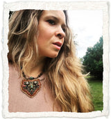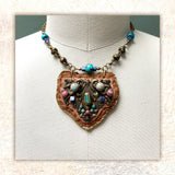 SHIELD PENDANT : Antique Brass and Turquoise on Desert Rose Leather