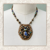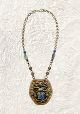 SHIELD PENDANT : Brass Serpent & Turquoise on Metallic Leather