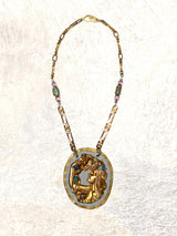 This leather and brass pendant makes a bold statement, while also being versatile enough to wear every day. It was inspired by vintage metalwork, incorporates semi-precious stones, and was designed to honor strong women.