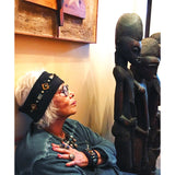WINTER HEADBAND : African "Turquoise" on Faux-Suede w/ Comfort Stretch, BLACK